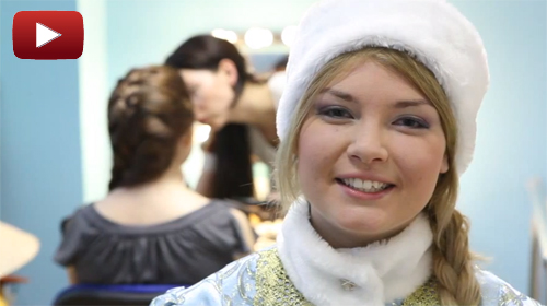 У Снегурочки есть два варианта одежды. Первый подходит для корпоративов – это накидка и платьице серебристого цвета. Второй – накидка и длинная юбка - больше подойдёт для поздравления детей. Оба наряда сделаны из белого материала с серебристой вышивкой и отстрочены мехом. |